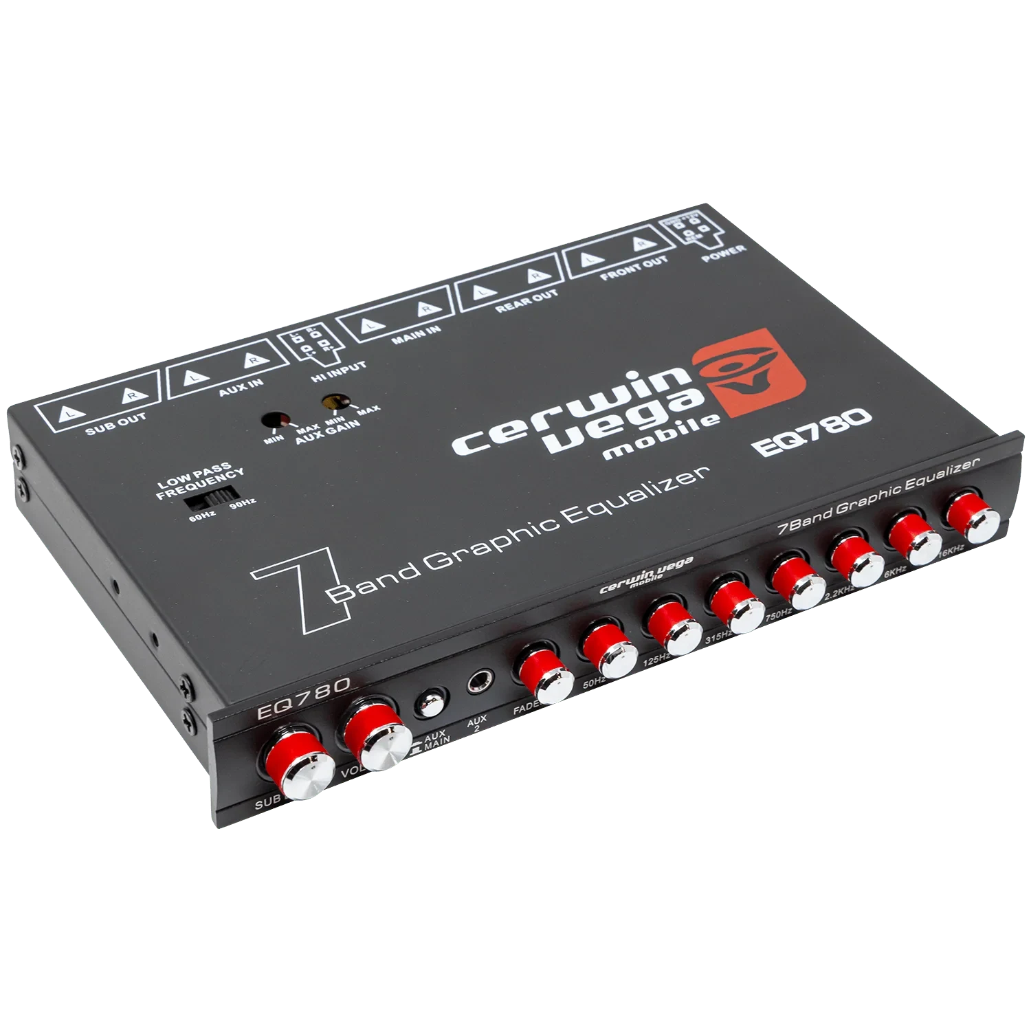 EQ780 - 7-Band Parametric EQ with Auxiliary Input Description: The Cerwin-Vega EQ780 7-Band Parametric EQ with Auxiliary Input is a versatile and powerful tool for anyone looking to achieve superior sound customization in their car audio system.